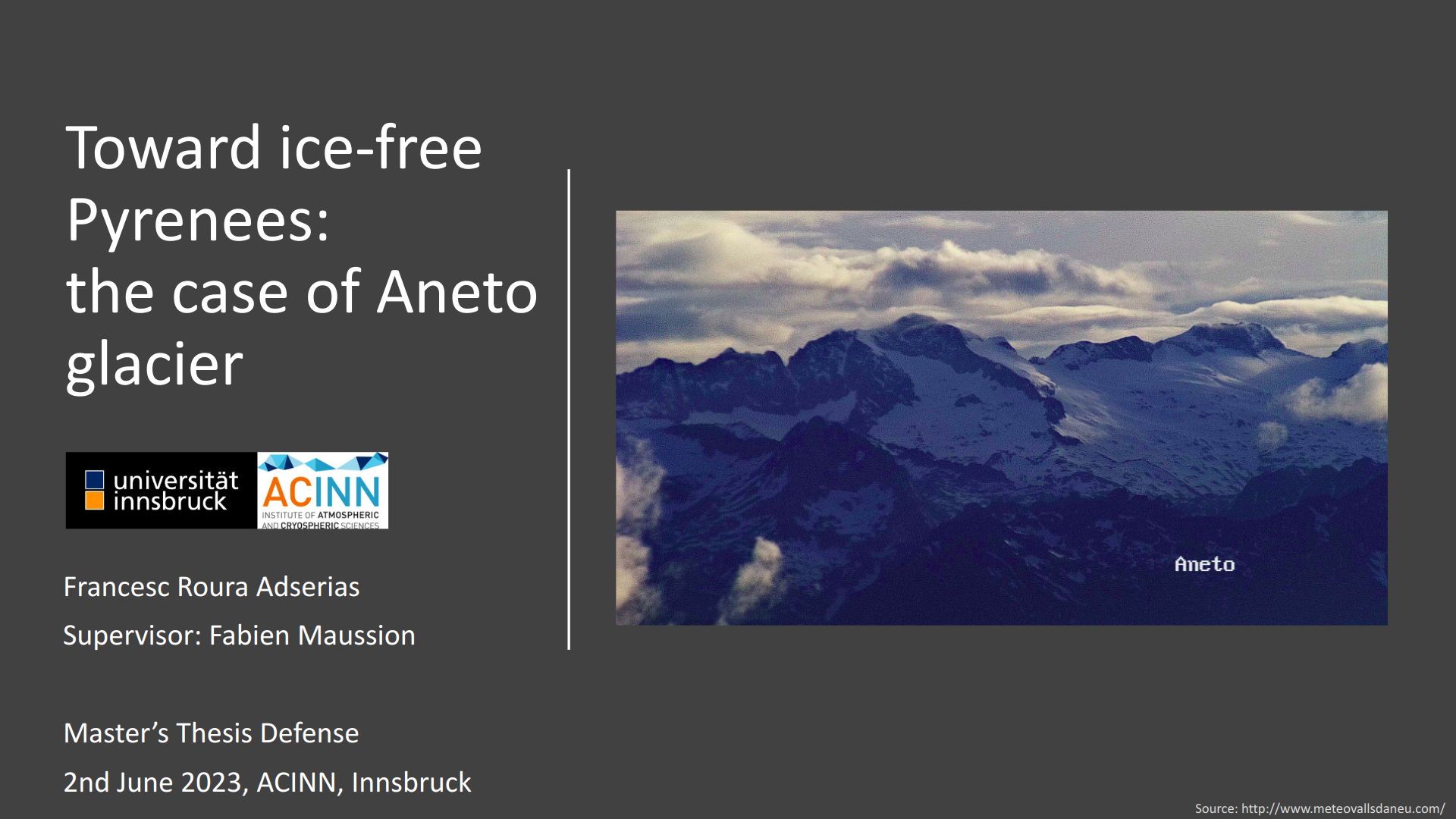 After some days of foehn, snow, high temperatures, thunderstorms and pictures to all type of clouds (yes, we have a whatsapp group where to share cloudpics) I was about to start the master’s thesis about the future evolution of Aneto glacier, the biggest in the Pyrenees. Even though I had already in mind that I would not stay in the field of glaciology, I still found extreme timely and important to project the evolution of Aneto, as we are the first and at the same time last generation able to do so. Therefore I forwarded this idea to Fabien, who accepted it but at the same time proposed some other interesting topics.